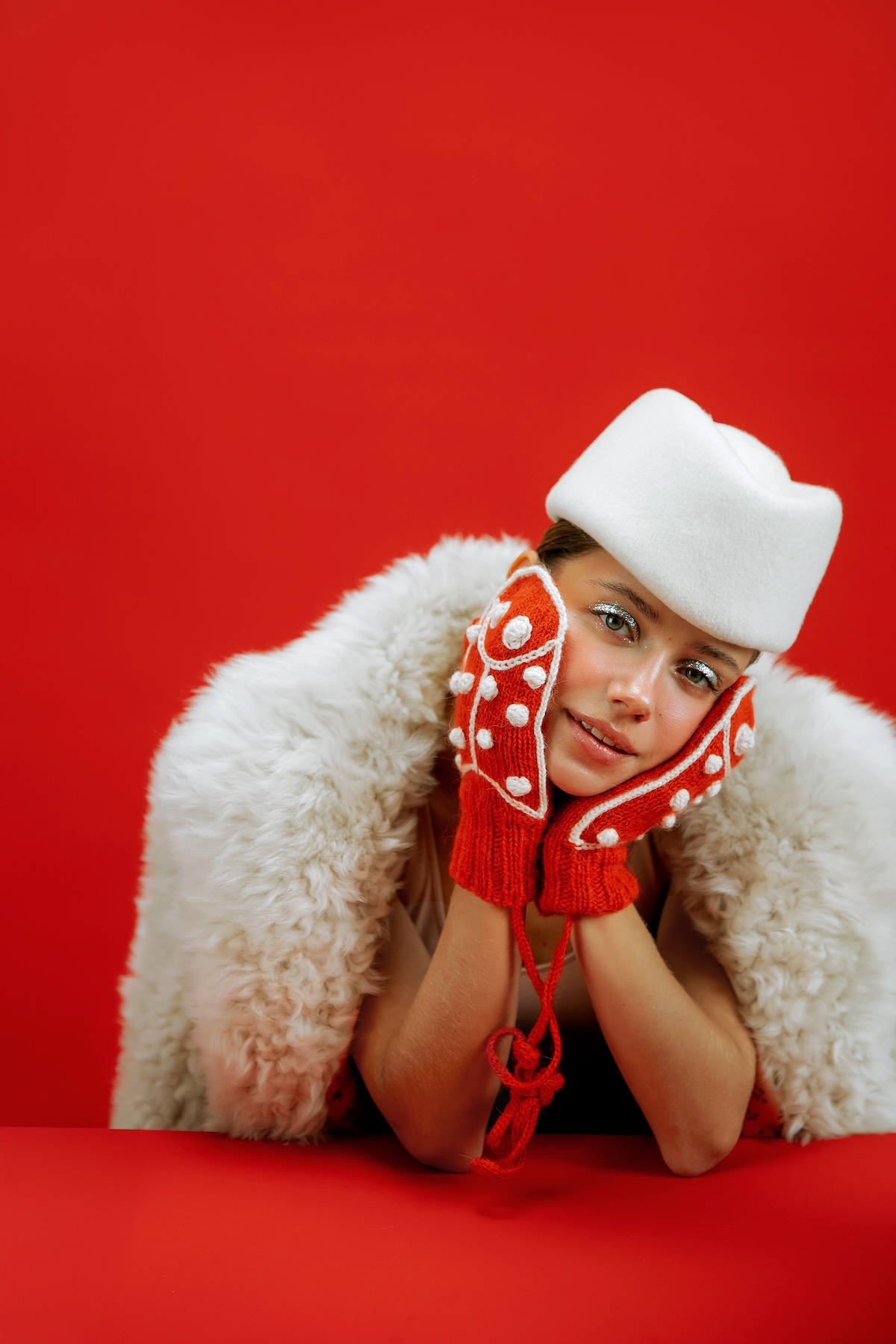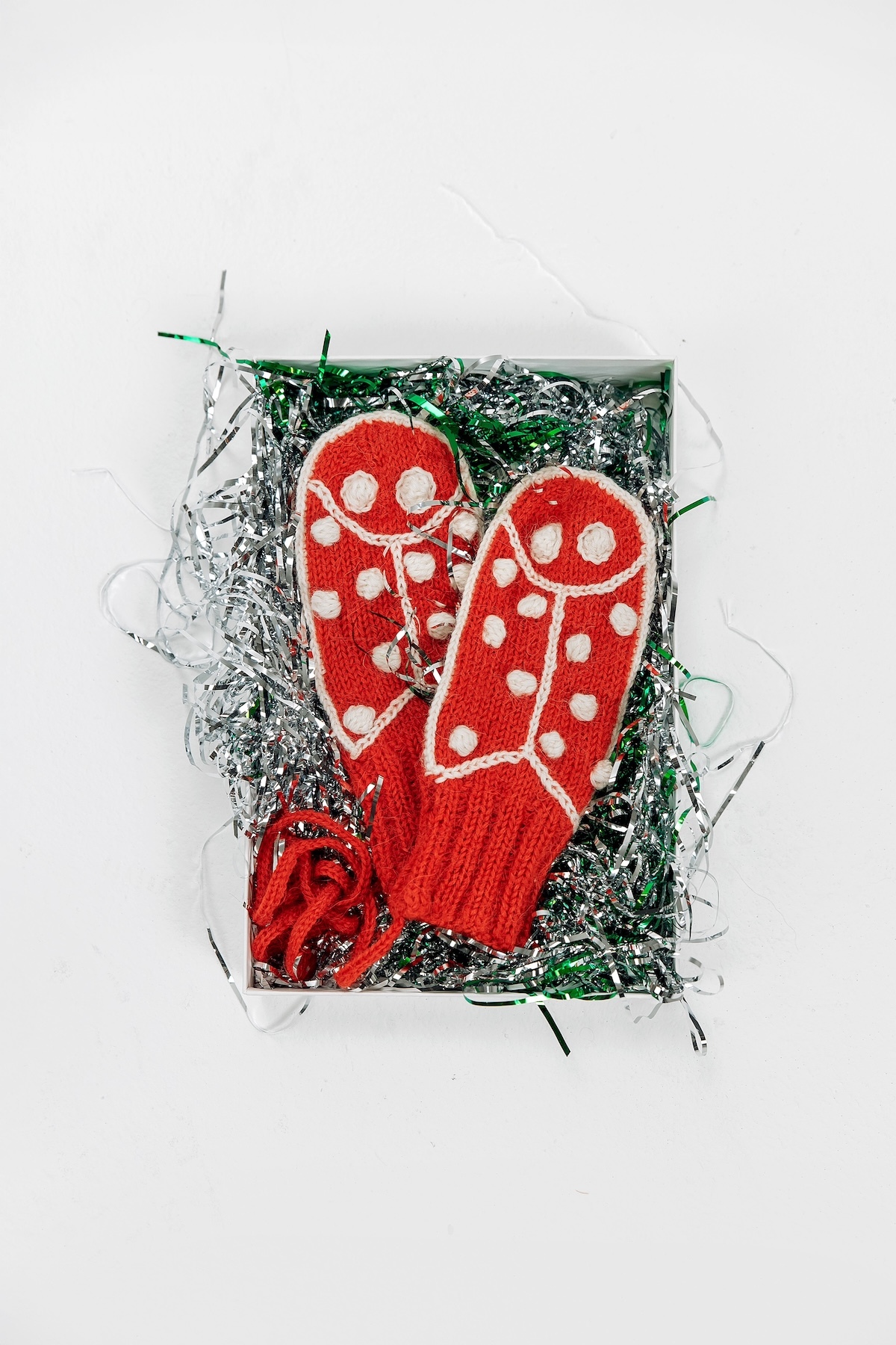 Варежки на шнурочке с ручной вышивкой «Божья коровка».