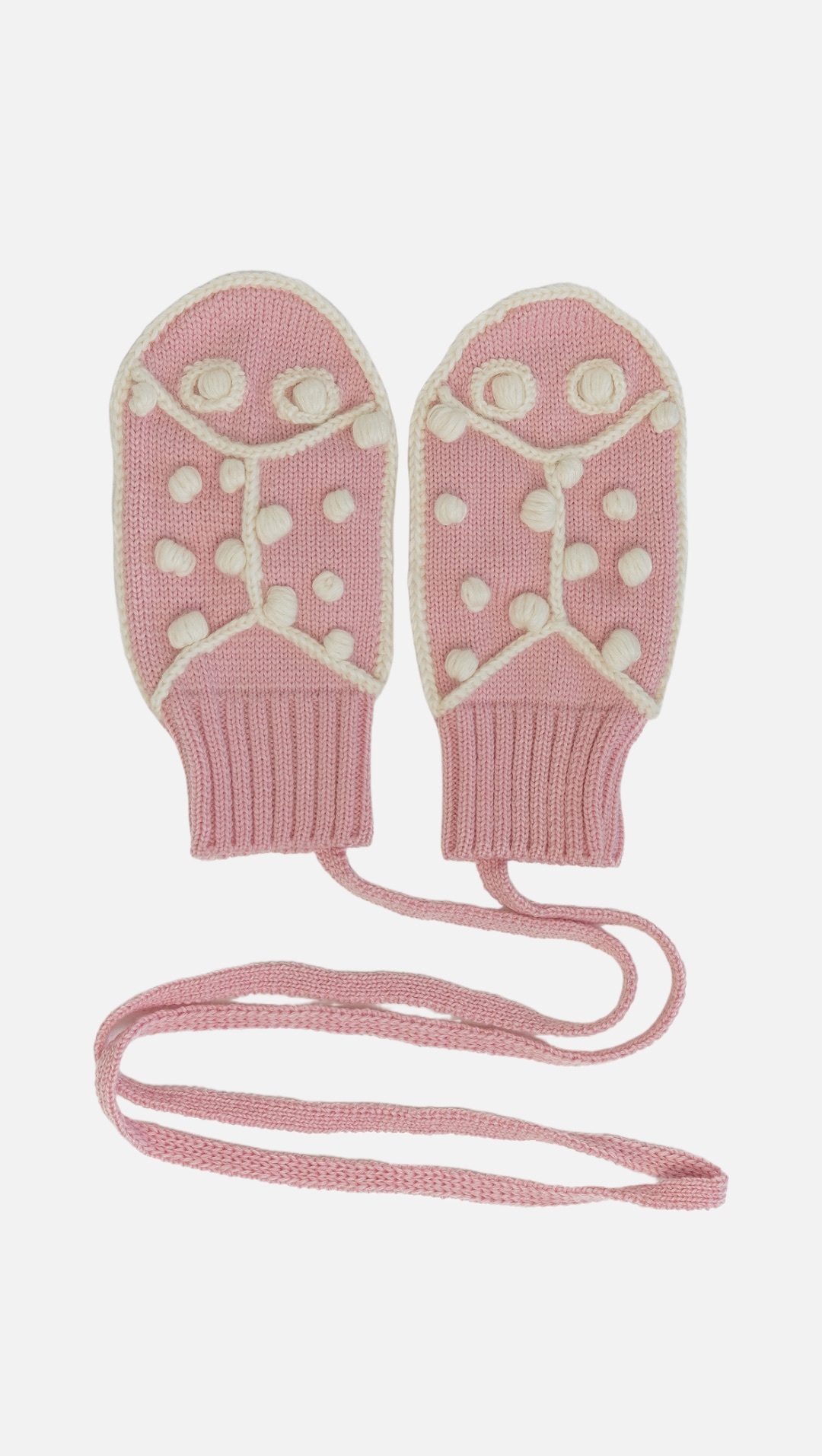 Варежки на шнурочке с ручной вышивкой «Божья коровка».