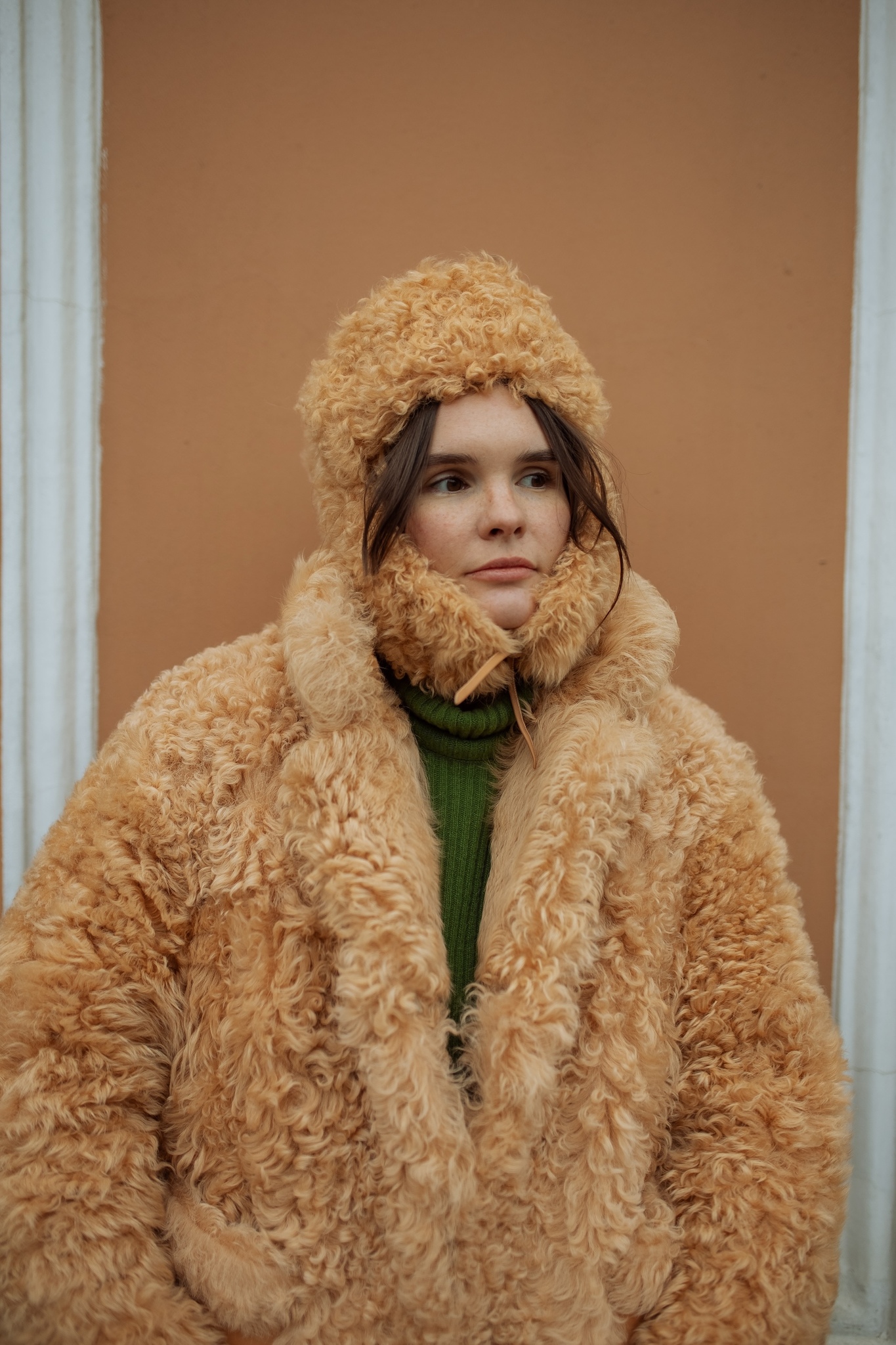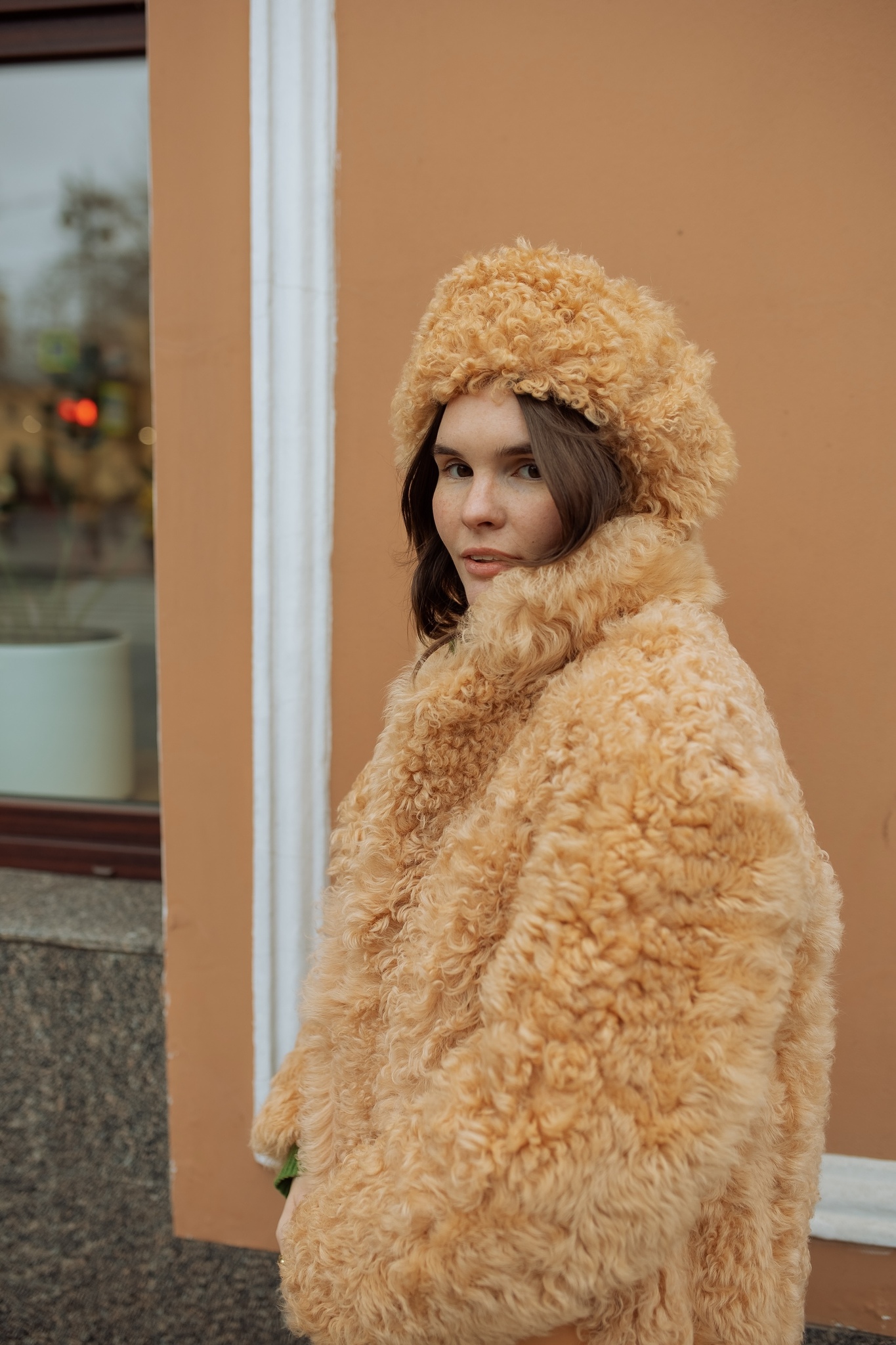 Шапка-ушанка из овчины со стеганой подкладкой из вискозы.