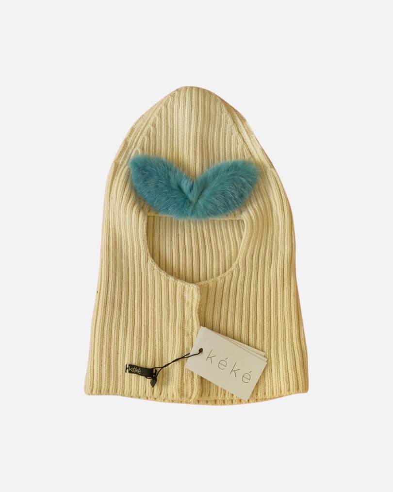 Шерстяная балаклава с "бровями" из меха норки. Застёгивается спереди вдоль шеи на 4 кнопки. Защитит ваши шею и уши в холодные и ветряные дни. Отлично сочетается с шубами и пальто k é k é. Обхват головы 54-58 см.