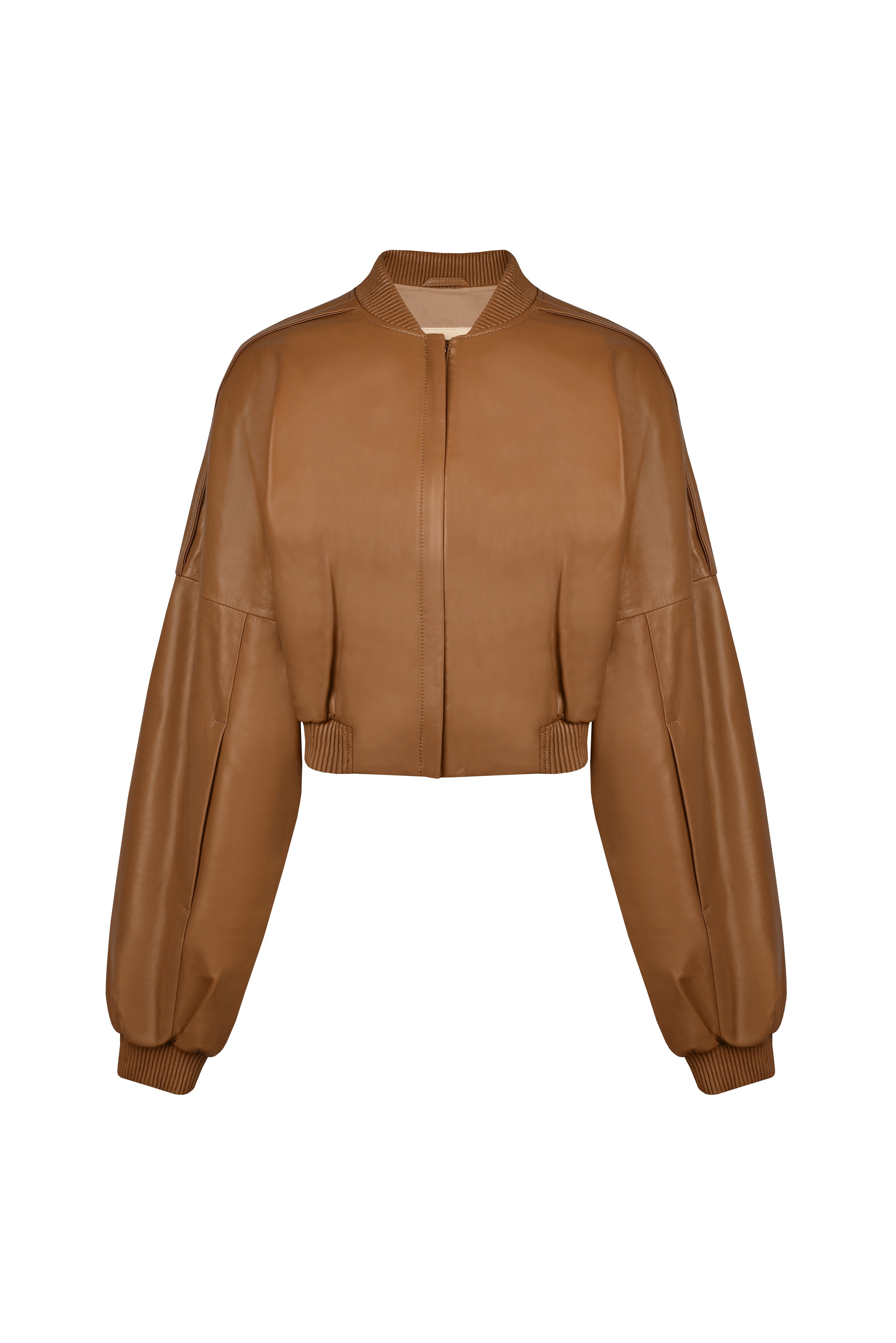 Укороченная куртка-бомбер из натуральной кожи.