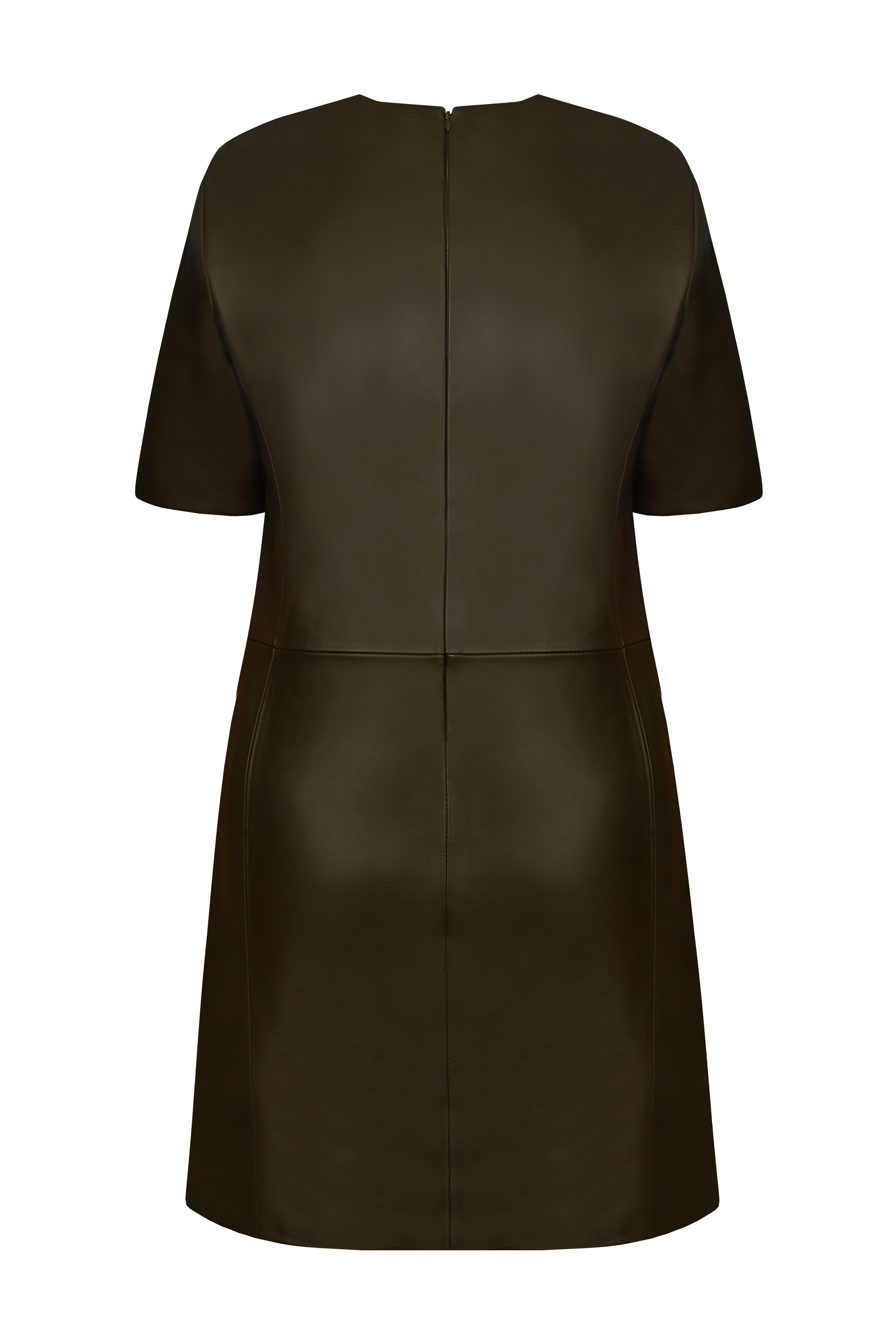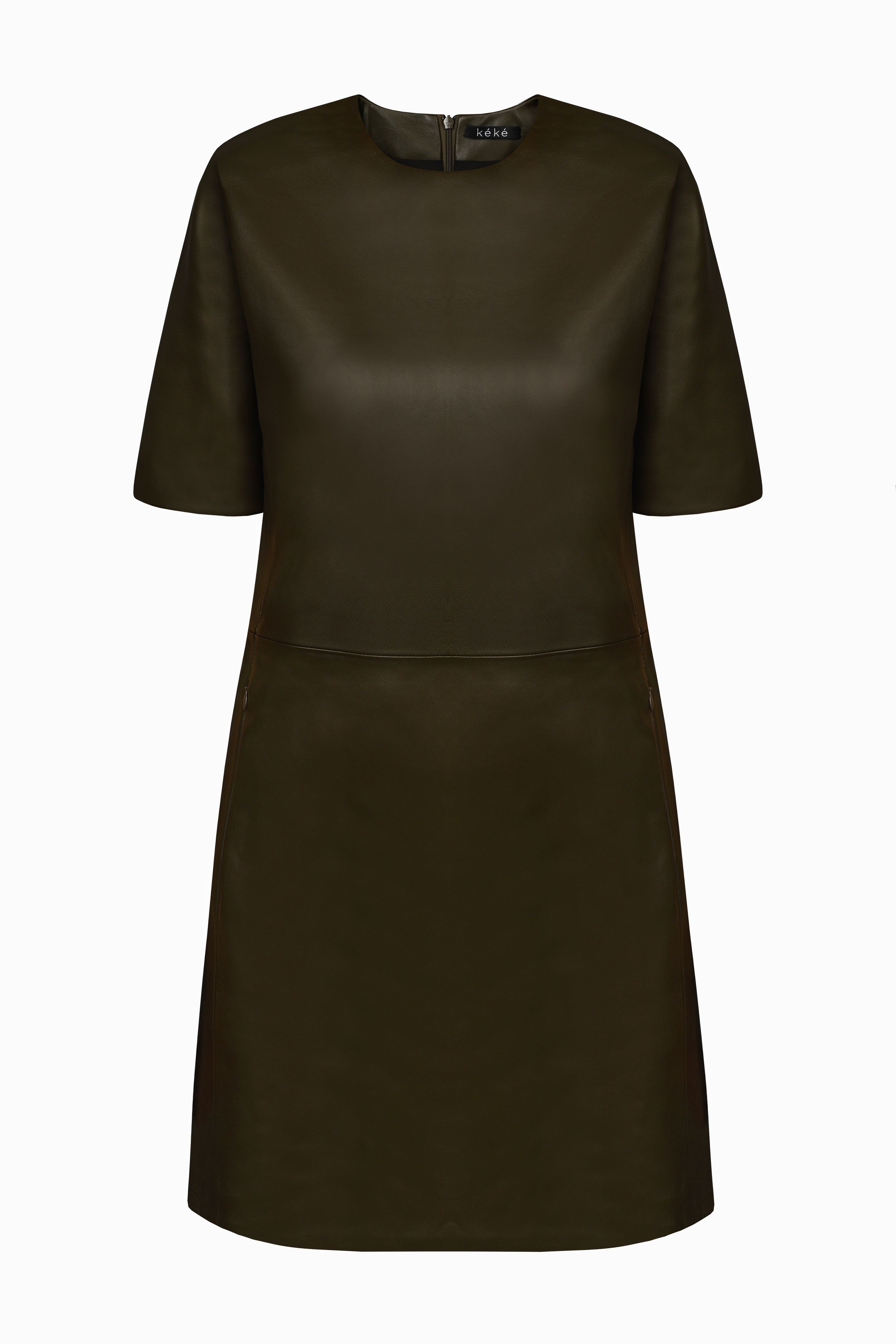 Короткое платье k é k é с приталенный силуэтом, выполненное из натуральной кожи. Застёгивается сзади на молнию. Два прорезных кармана спереди на магнитиках. Подкладка: 55% вискоза, 45% полиэстер.