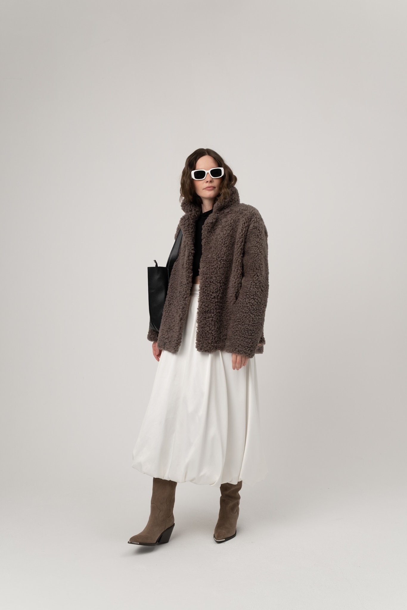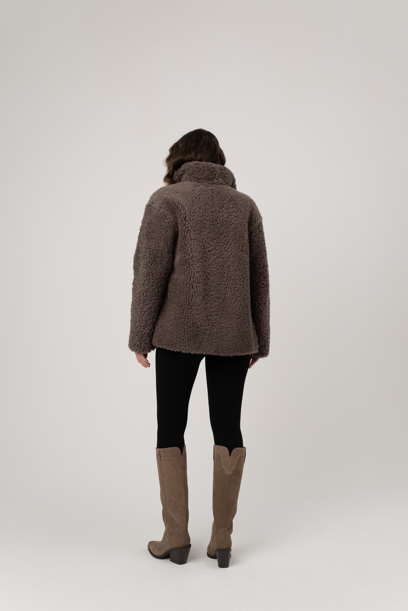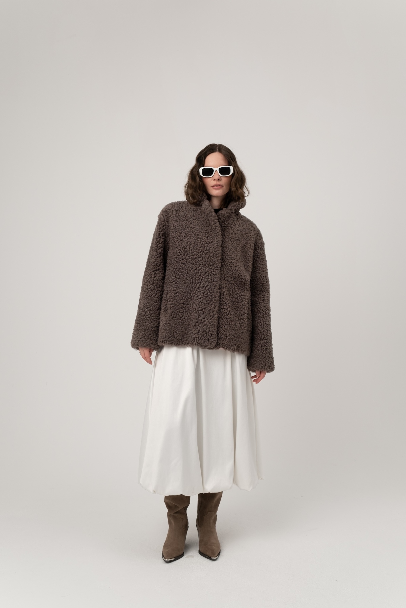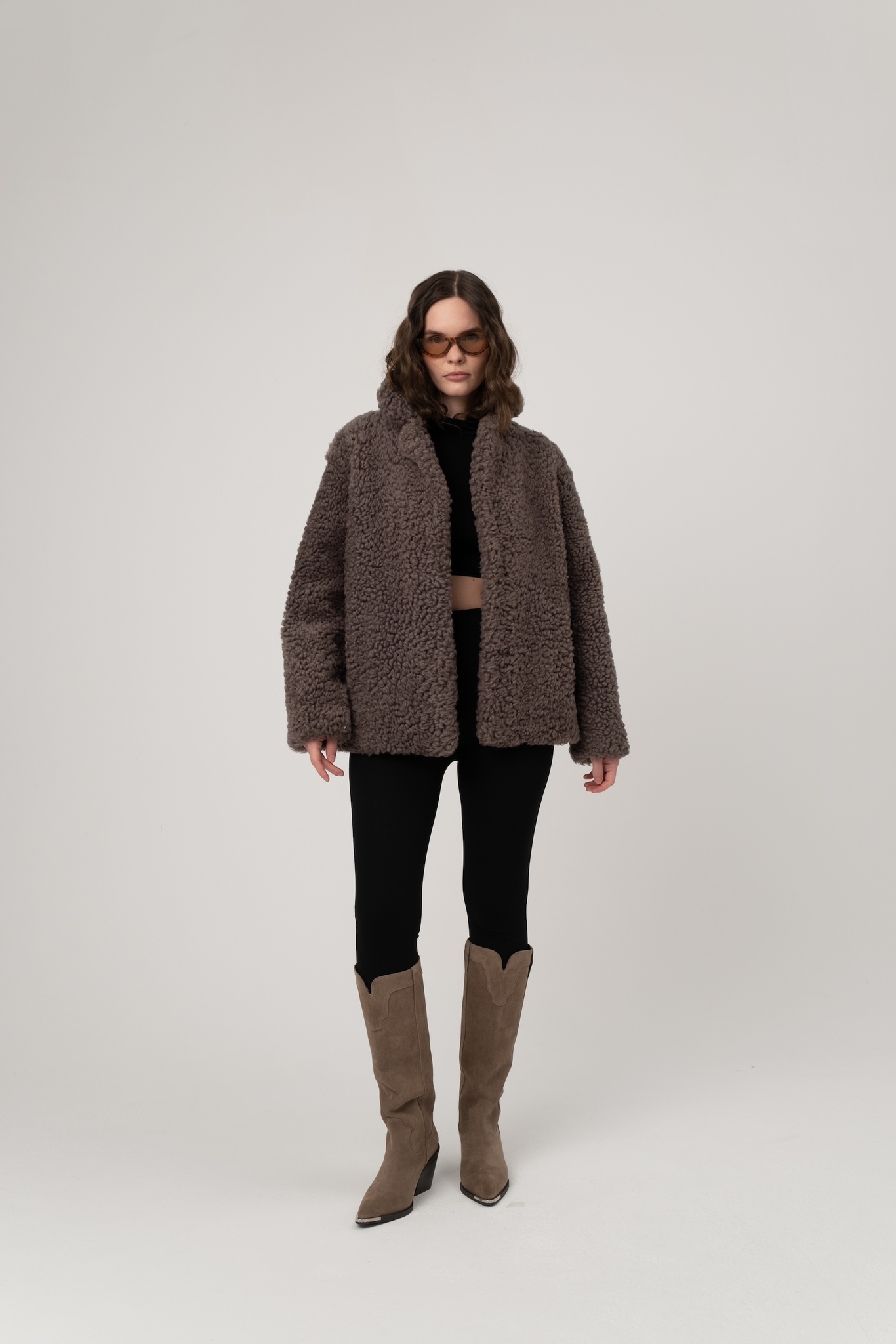 Шуба из исландской овчины с прорезными карманами. Английский воротник, положение которого регулируется. В подкладке есть потайной карман.