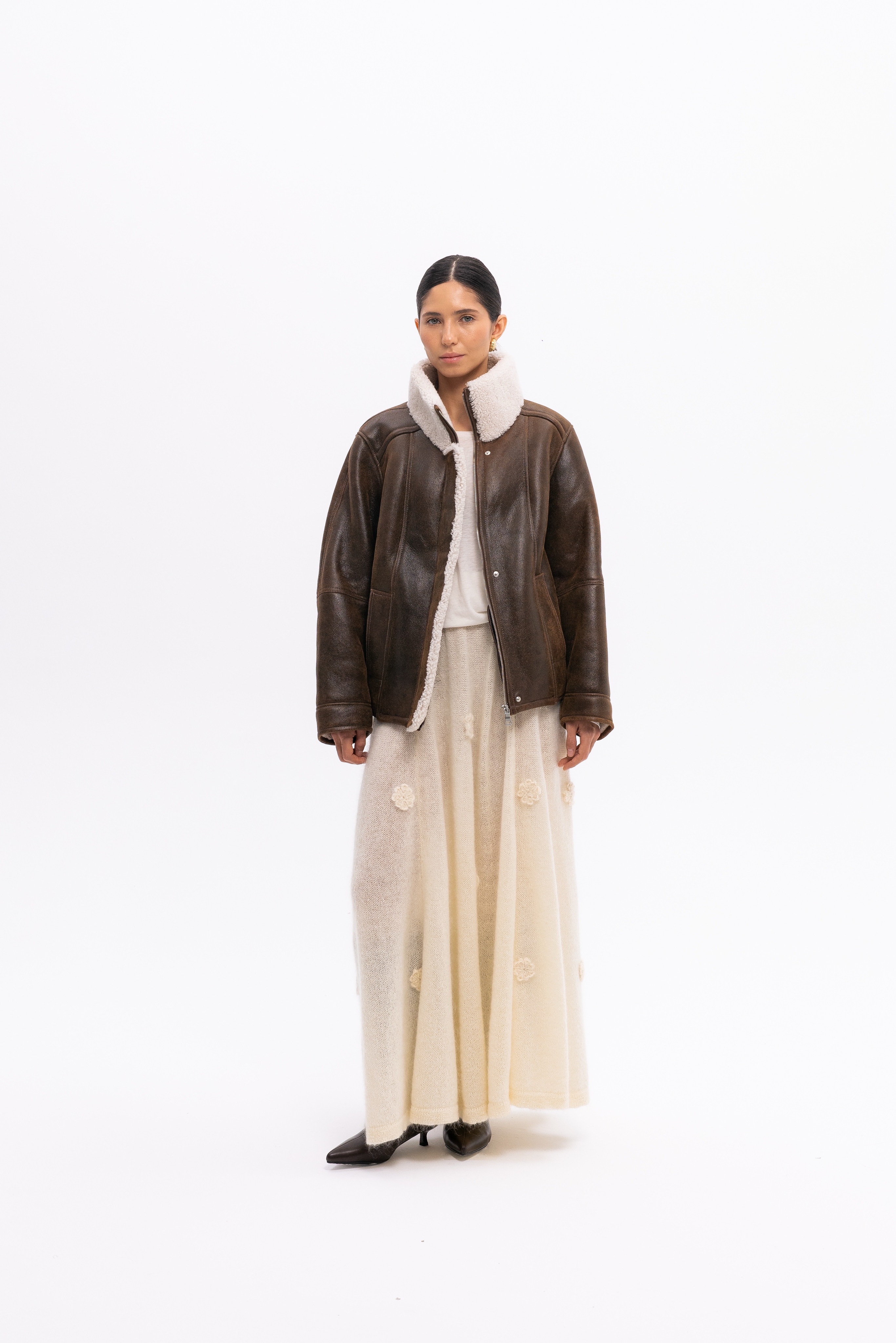 Двусторонняя шуба-дубленка из натуральной овчины. Английский воротник. Застёгивается на пуговицы. Длину рукавов можно регулировать, подгибая их. Два прорезных кармана. Легкая и очень тёплая.