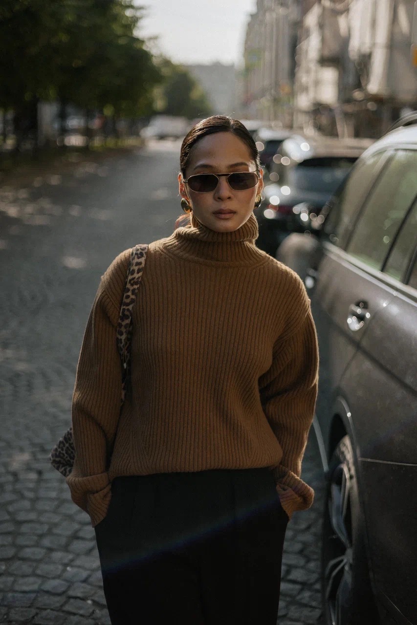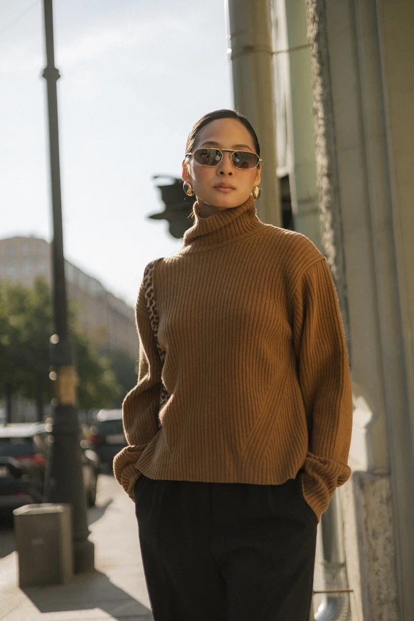 Коричневый свитер k é k é с удлинёнными рукавами свободного кроя, выполненный из 100% итальянской шерсти. Размер one size.